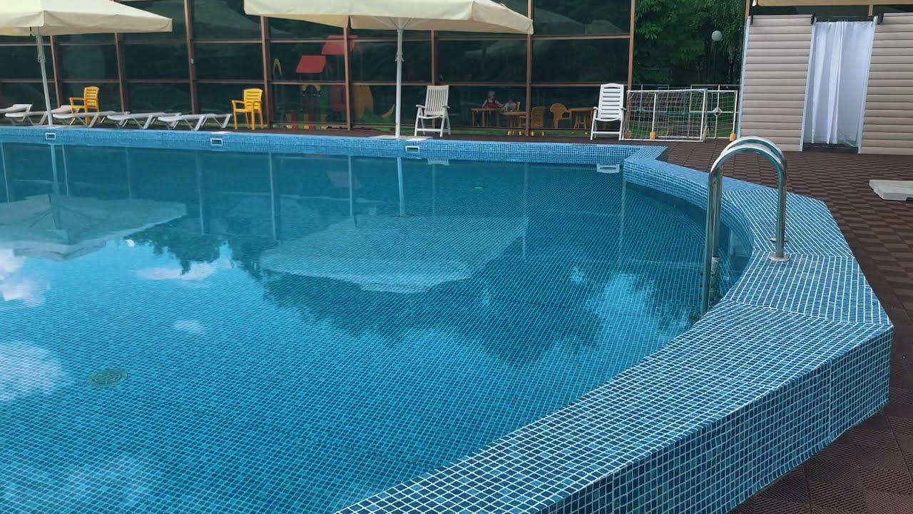 Размер чаши - 10х20 метров, глубина 1,2-1,85 метра, подогрев воды до +30ºC
